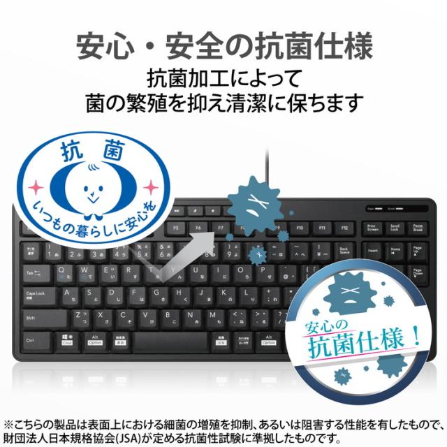 本格静音設計!Windows、ChromeOS、macOSで使用可能。さらに、日々のパソコン操作に安心をプラスする抗菌仕様の有線静音テンキーレスキーボード。