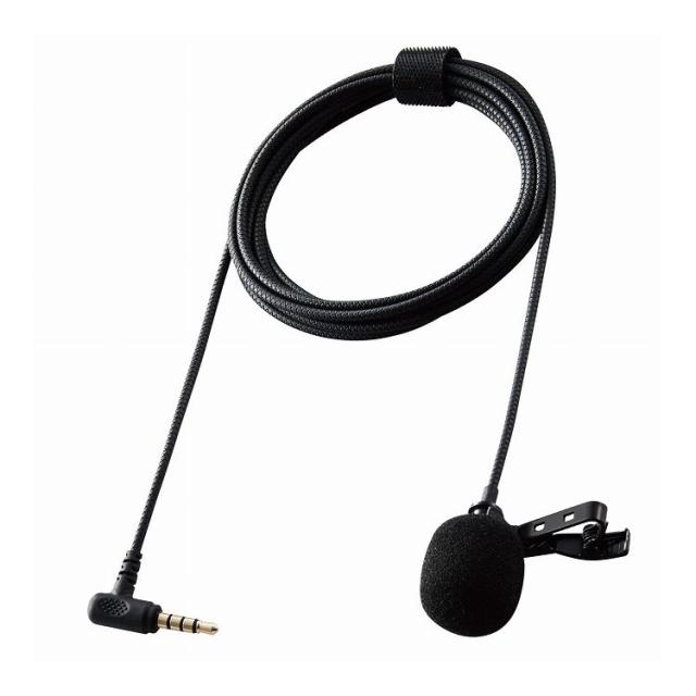 ピンマイク クリップマイク 4極ミニプラグ スマホ PC 変換ケーブル付 収納ポーチ ケーブル長:1.8m 音声チャット 動画撮影 ブラック HS-MC09BK エレコム(代引不可)