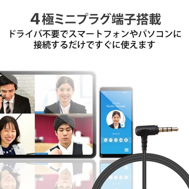 ■φ3.5mm4極ミニプラグ(CTIA規格準拠)に対応したスマートフォンやパソコンなど様々な機器で使用可能です。