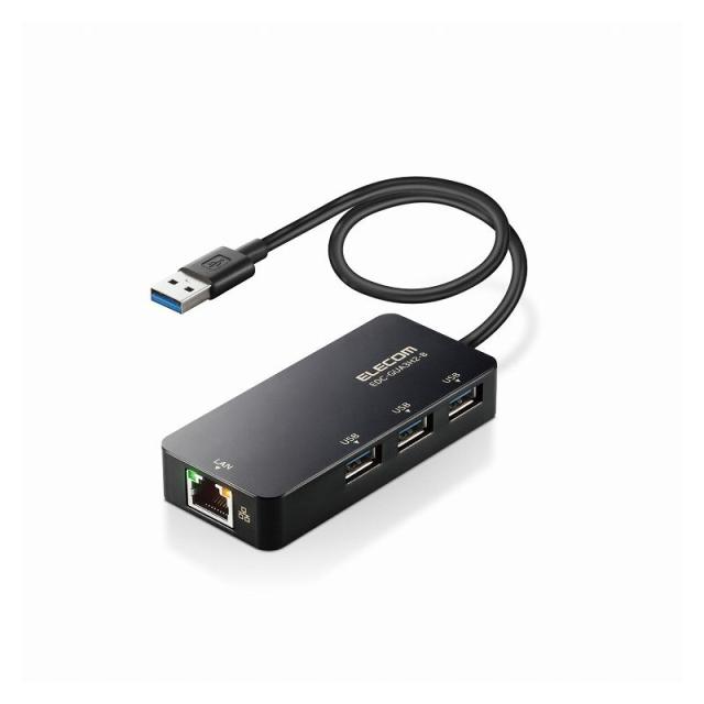 ELECOM LANアダプター 有線 タイプA Giga USBハブ付 USB-A×3 USB3.2 Gen1 3.1 Gen1 3.0 10 100 1000Mbps 【Windows Mac対応】 ブラック エレコム EDC-GUA3H2-B(代引不可)【送料無料】