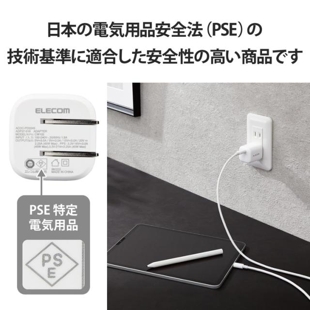 エレコム ACアダプター USB Type C 充電器? 45W PD PPS 対応 Type-C スイングプラグ Windows iPad MacBook Air M1 2020 iPhone Android 他対応 ホワイト ACDC-PD2245WH(代引不可)【送料無料】
