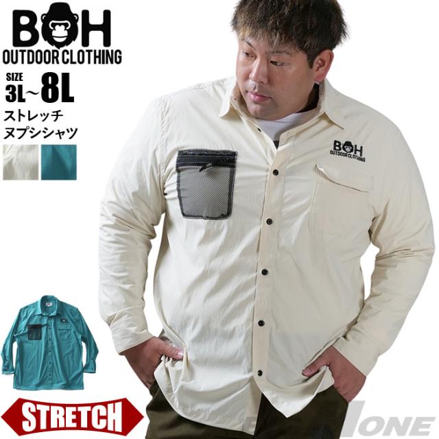 大きいサイズ メンズ BH ビィエイチ ストレッチ ヌプシ シャツ bh-sh240404