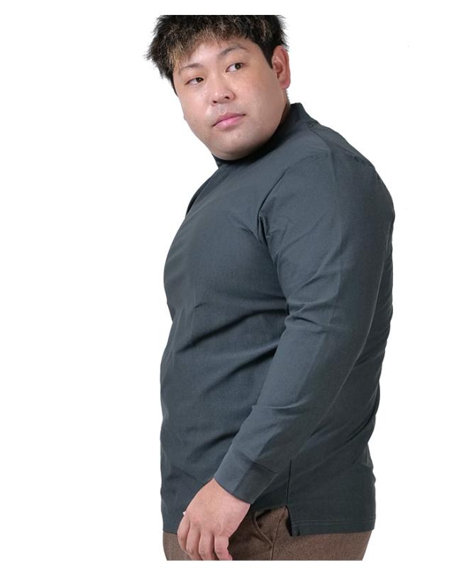 大きいサイズ メンズ DREAM MASTER ストレッチ モックネック 長袖 Tシャツ dm-t240420