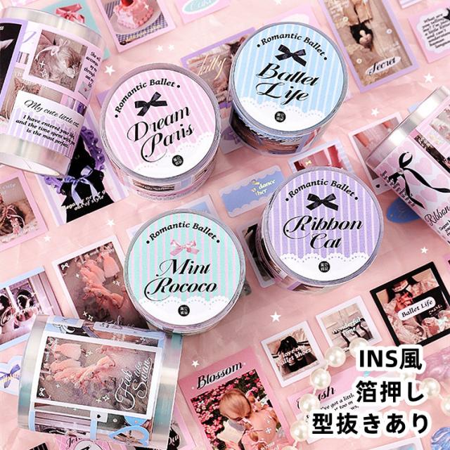 型抜き 箔押し Ins風 ダイカット テープ 幅広50mm 海外 マスキングテープ インスタ風 コート紙 文房具 大容量 コラージュ素材 おしゃれ 銀箔押し 女の子 人物シール 後ろ姿 猫 ねこ 英語 生活雑貨 リボン タグ イラスト デコレーション ハンドメイド 手帳 日記 DIY