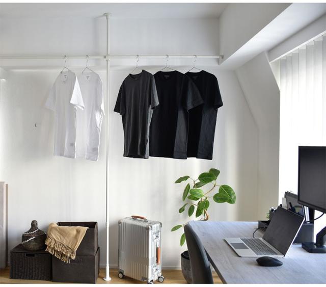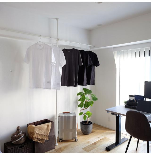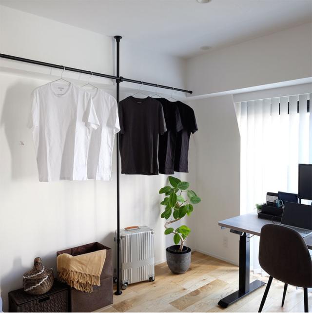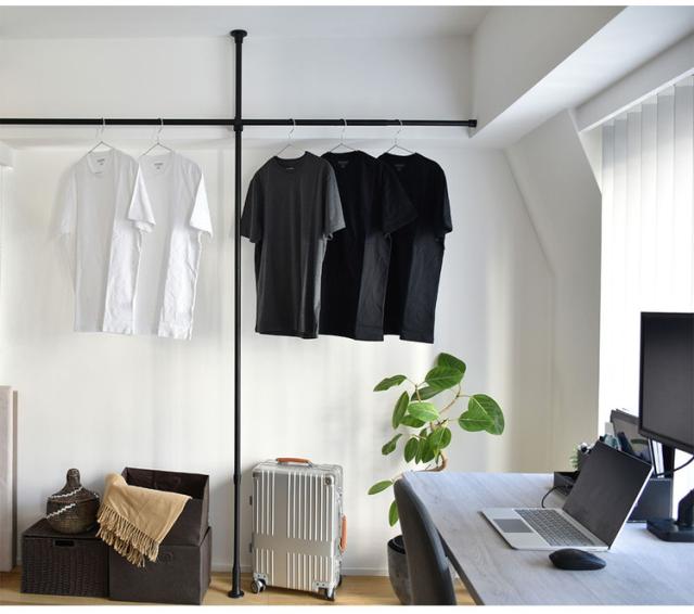 ・縦方向のつっぱり棒と横方向のつっぱり棒を組み合わせて作るハンガーラックです。