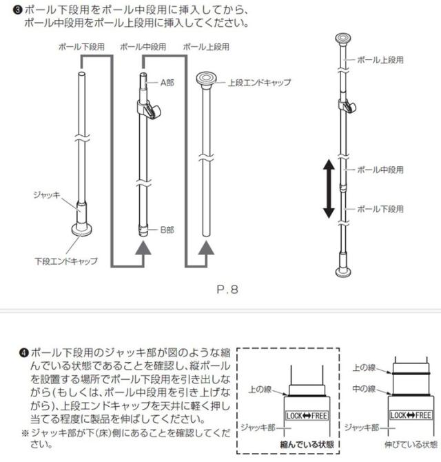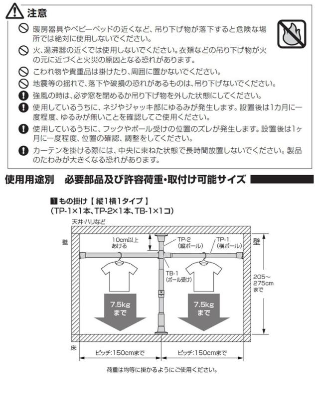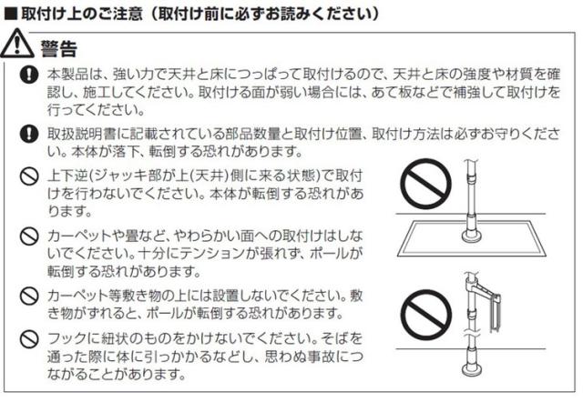 つっぱり棒を設置する際は、必ず取扱説明書をよく読んでから設置してください。