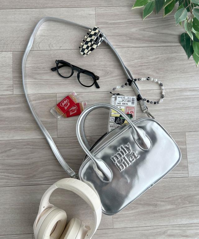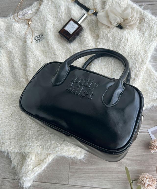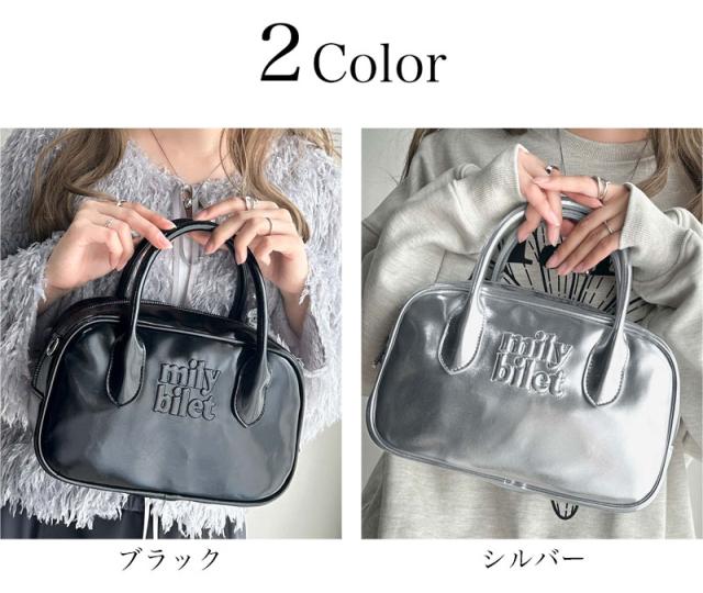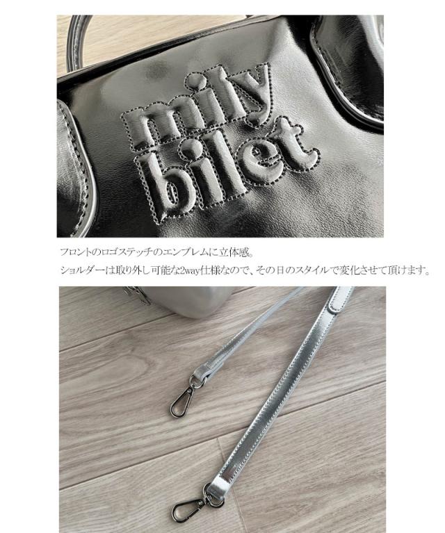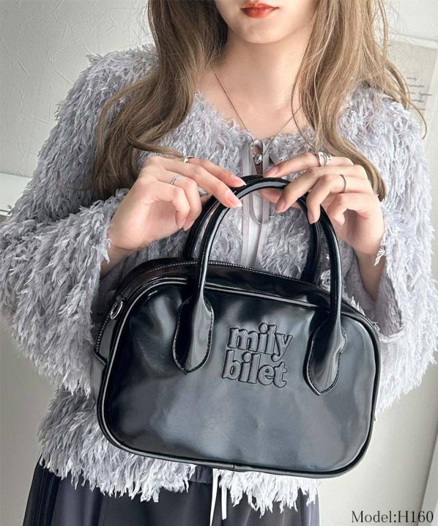クラシカルエルフ冬新作 mily bilet バッグ ミニボストンバッグ レディース ボストン エナメルライク エコレザー ミニ バッグ ショルダー ロゴ ステッチ オールシーズン シーズンレス 2024aw mi1159026