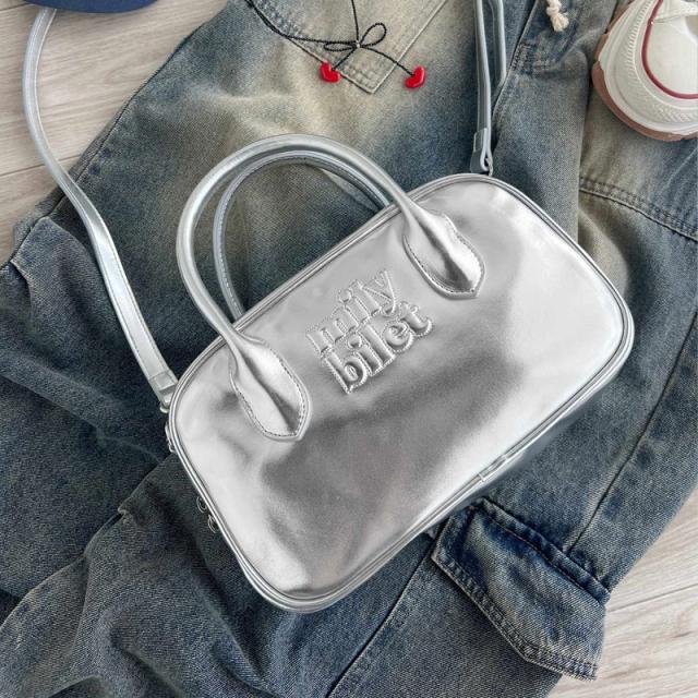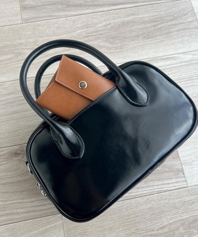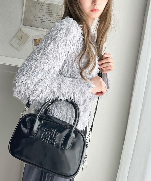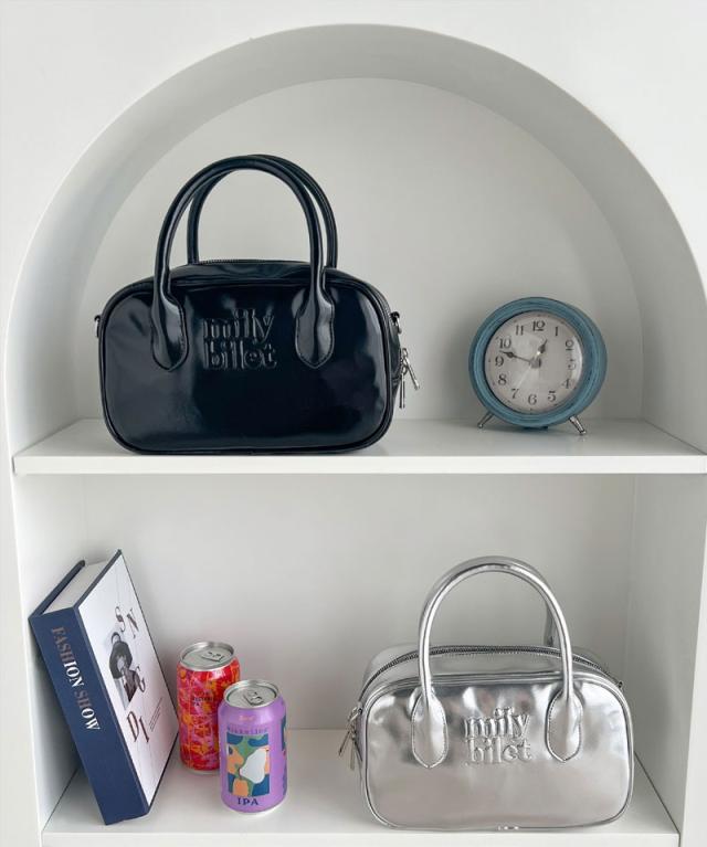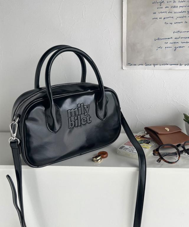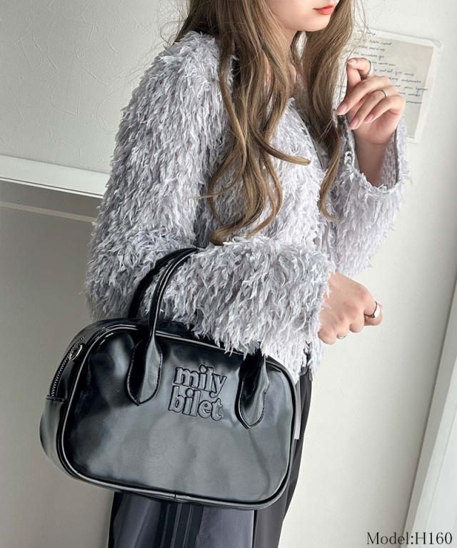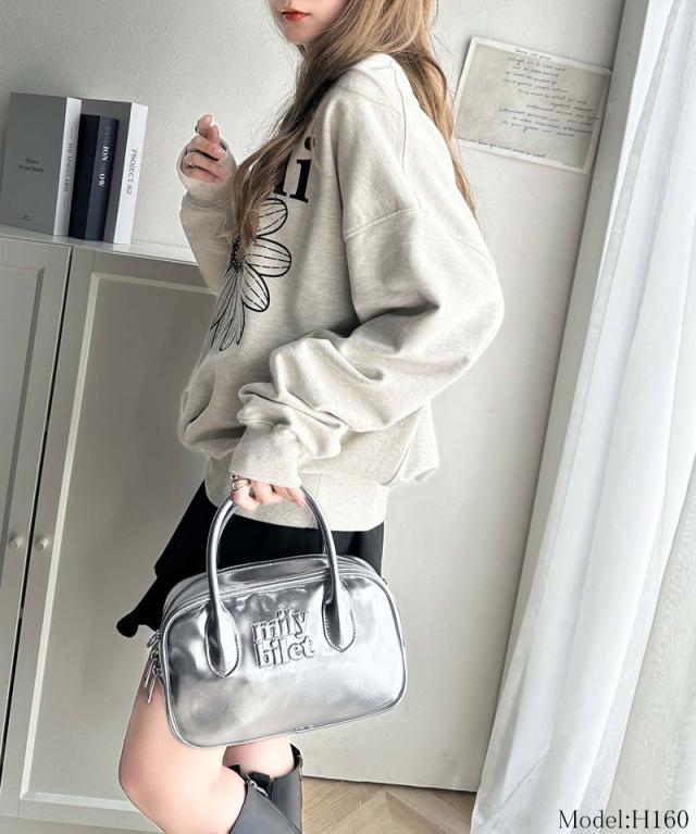 ★【mily bilet】ヘビロテしたい主役級バッグ。エナメルライクエコレザーエンブレムミニボストンバッグ★