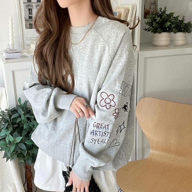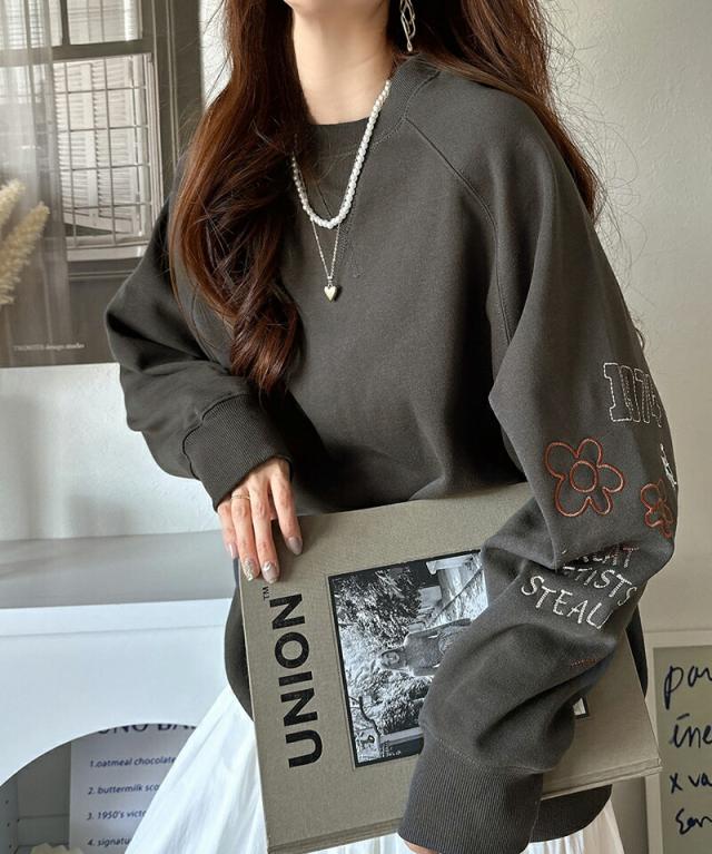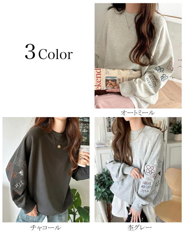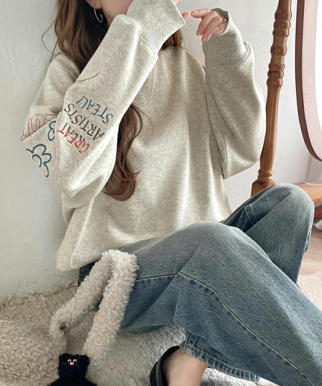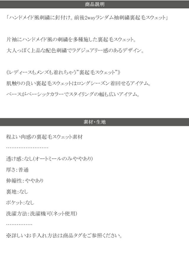 ★ハンドメイド風刺繍に釘付け。前後2wayランダム袖刺繍裏起毛スウェット★