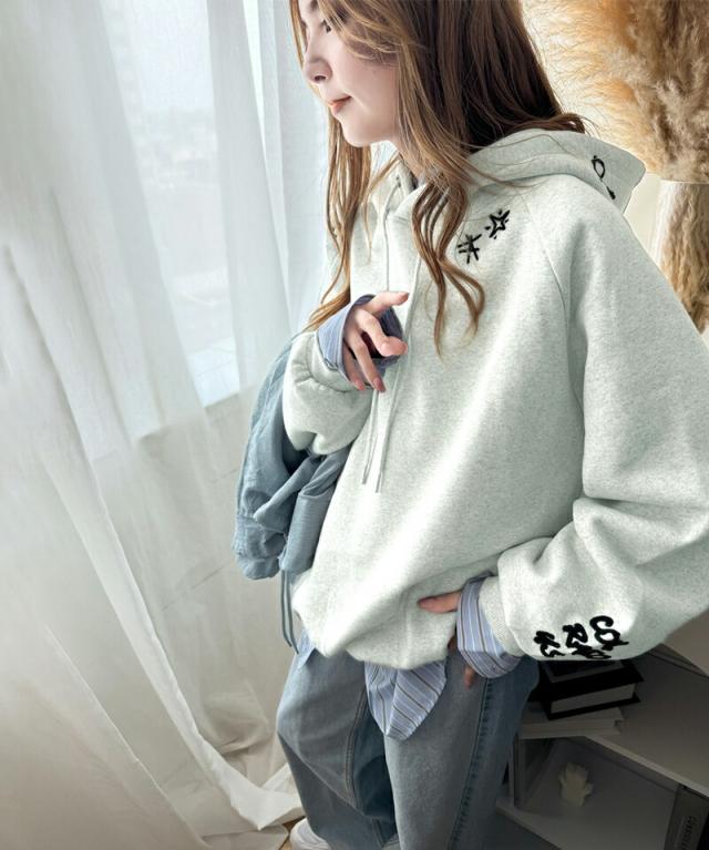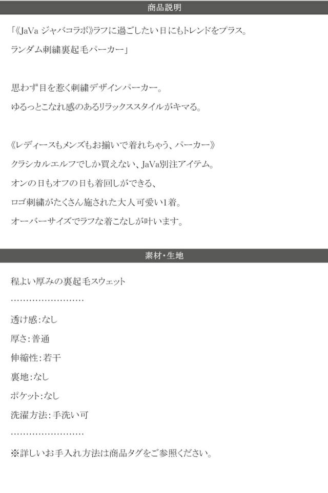 ★《JaVa ジャバコラボ》ラフに過ごしたい日にもトレンドをプラス。ランダム刺繍裏起毛パーカー★