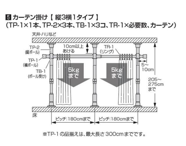 ・縦方向のつっぱり棒と横方向のつっぱり棒を組み合わせて作る簡易的なカーテンポールです。