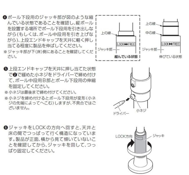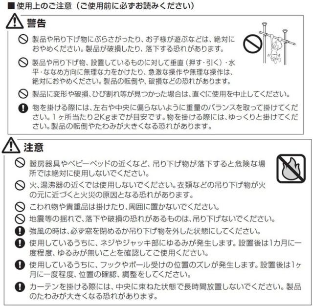つっぱり棒を設置する際は、必ず取扱説明書をよく読んでから設置してください。