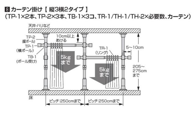 ・縦方向のつっぱり棒と横方向のつっぱり棒を組み合わせて作る簡易的なカーテンポールです。
