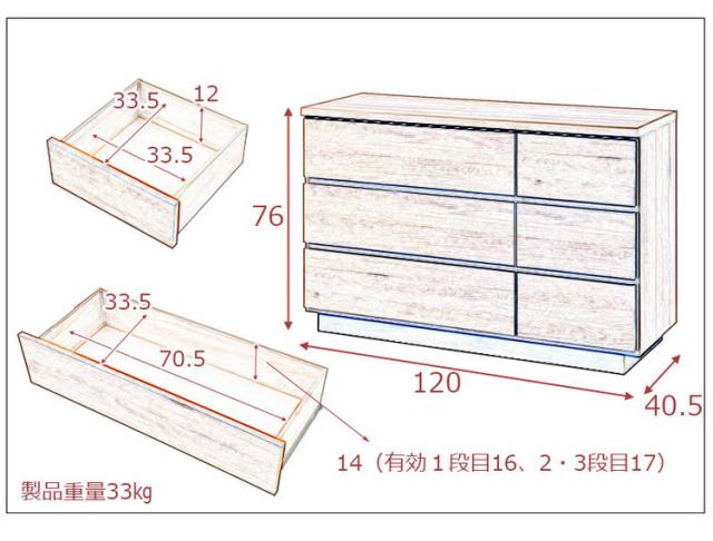 引出し内寸(大):約幅70.5×奥行33.5×深さ14cm
