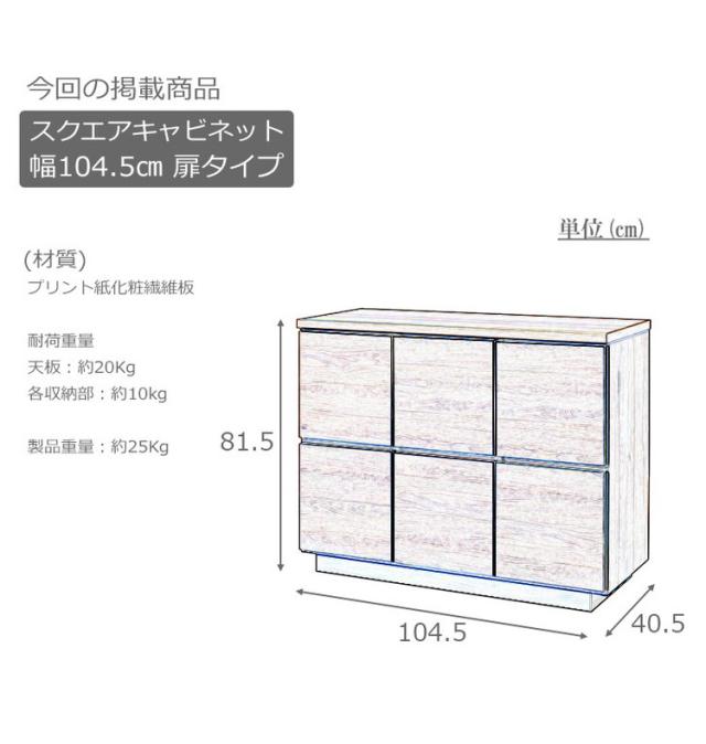 キャビネット 幅104.5cm 扉引き出しタイプ