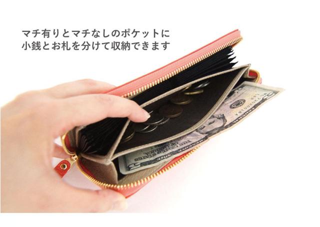 マチ有りにはお札(日本の紙幣はどれでも入る高さです)やコイン、マチ無しにはレシートなどを使い分けて収納ができるので便利です。
