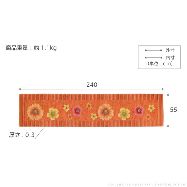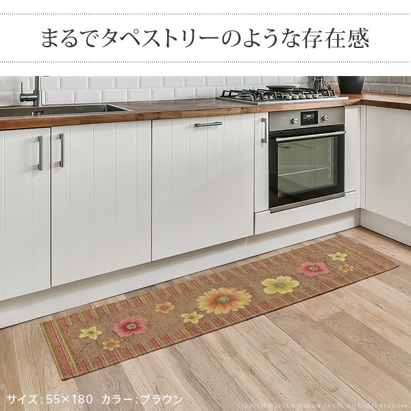 イタリア製 ジャガード キッチンマット フィオーレ 汚れ 55×240 洗える 丸洗い 長方形 おしゃれ かわいい 北欧 ウォッシャブル(代引不可)【送料無料】