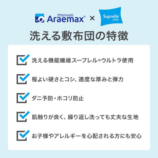 【日本製】清潔・安心のウォッシャブル布団 アドバンサ社 スープレル(R)ウルトラ中綿使用