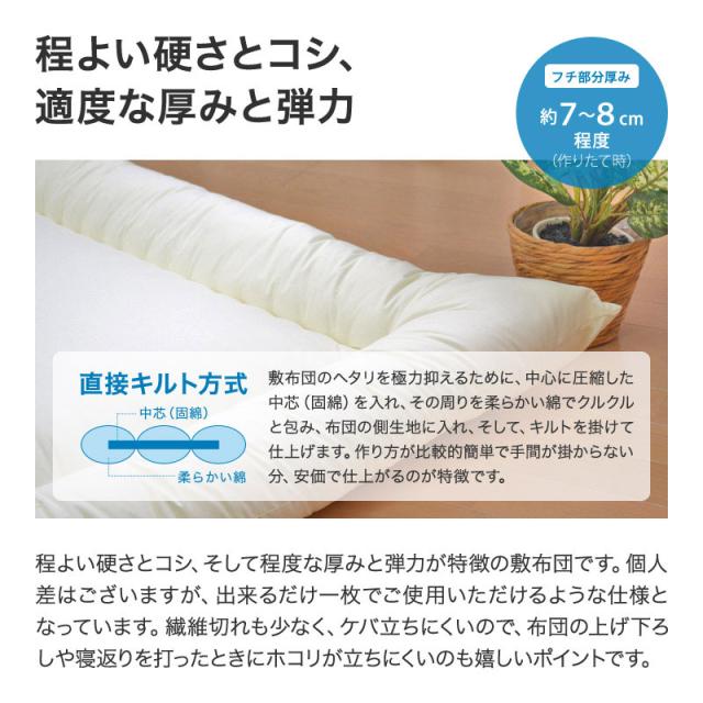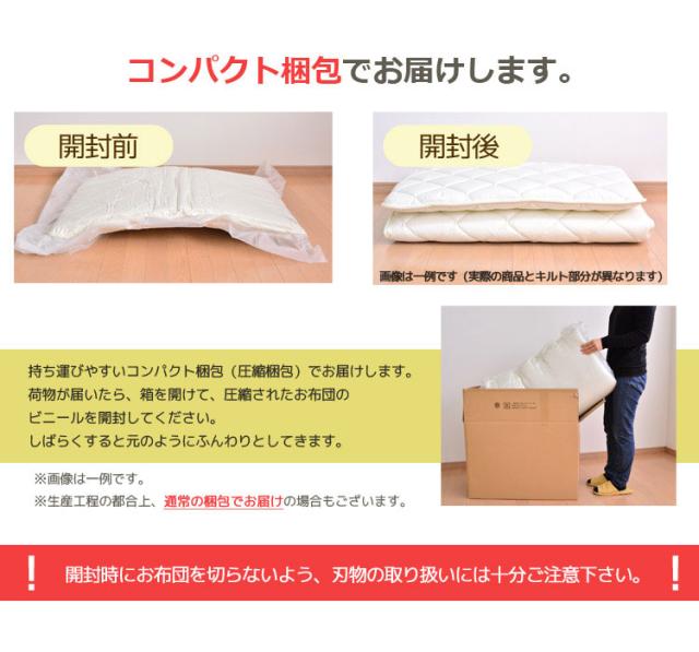 ※敷布団はコンパクト梱包(圧縮梱包)でのお届けとなります。商品が届きましたら、お早目にビニール袋から取り出してご使用下さい。開封の際、お布団を傷めないようご注意下さい。