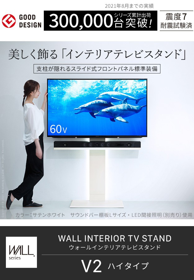 美しい存在感のWALL V2ハイタイプの壁寄せテレビスタンド。