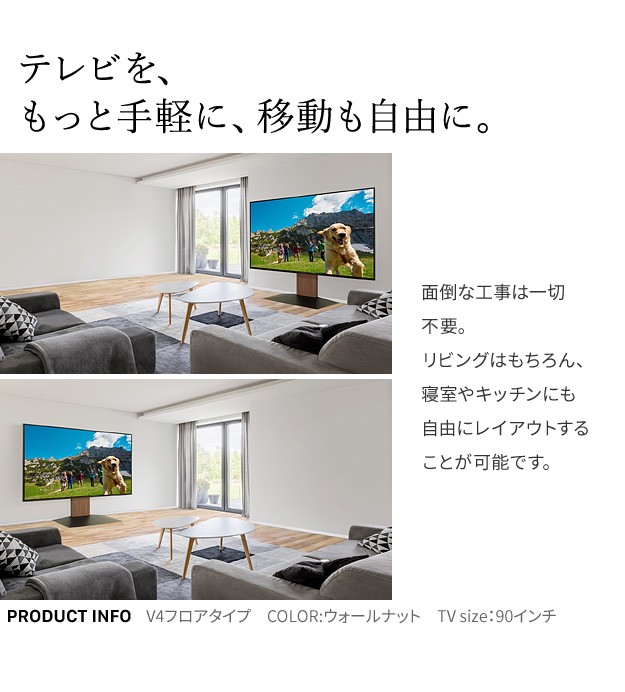 壁にピッタリ!お部屋を広く使えます。工事いらずで壁掛けよりも簡単に御使用いただくことができます。