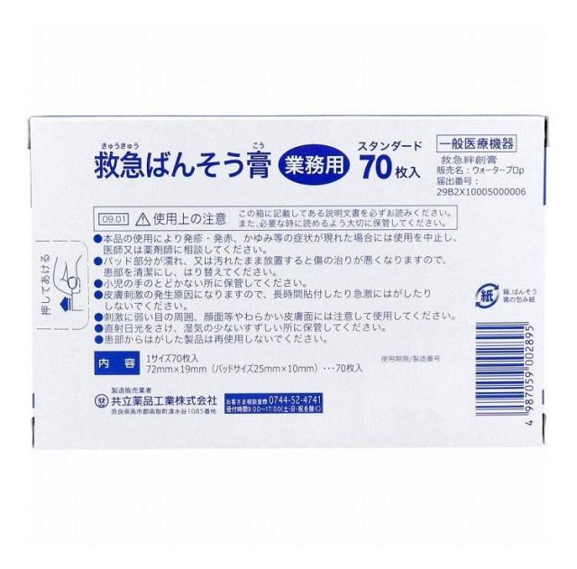 業務用 救急ばんそう膏 カラータイプ スタンダード 防水 ブルー 70枚入