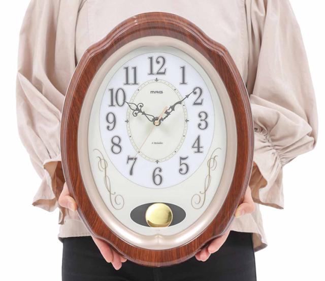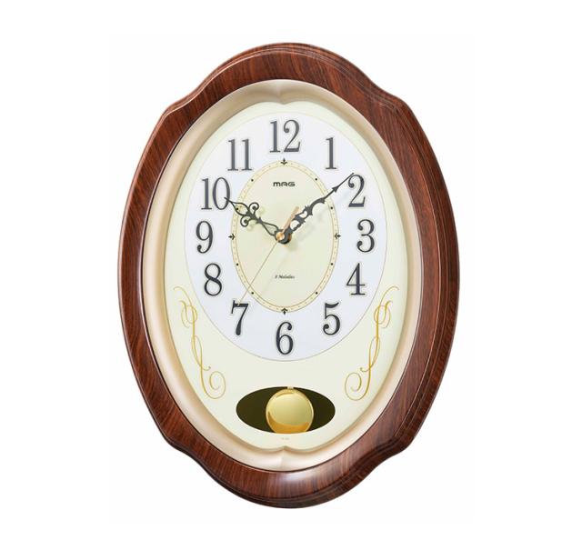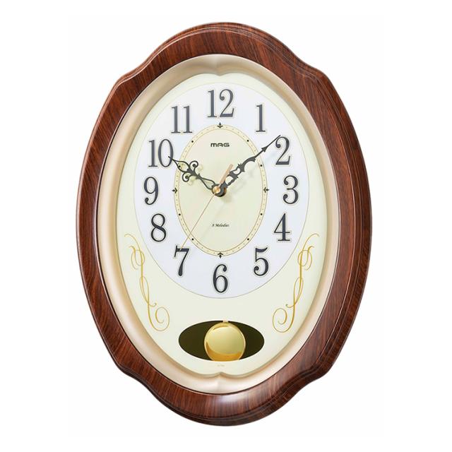 MAG電波振子掛時計 我が家の演奏会 プラスチック・ガラス 8曲メロディ 木目調 フレーム 上品 文字板 デザイン 電波時計 ステップ秒針 夜間秒針停止機能 音量無段階調節 振子 W-788 BR-Z ブラウン【送料無料】