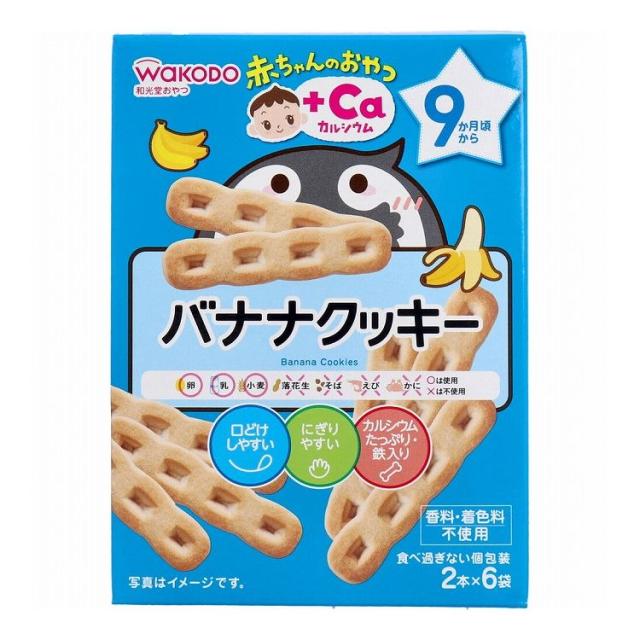和光堂 赤ちゃんのおやつ+Ca バナナクッキー 2本×6袋