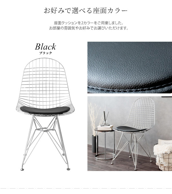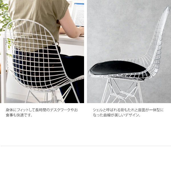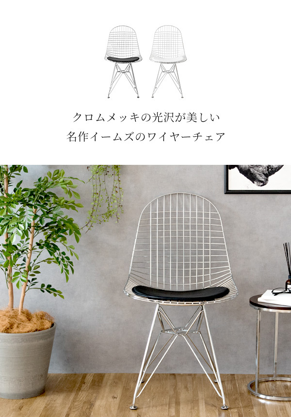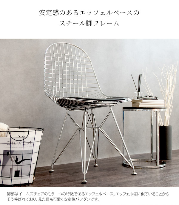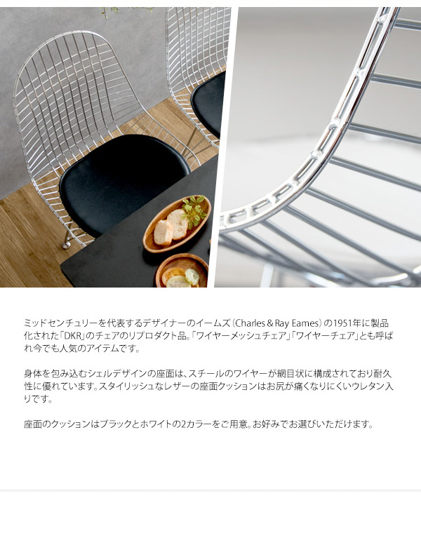 ミッドセンチュリーを代表するデザイナーのイームズ(Charles&Ray Eames)の1951年に製品化された「DKR」のチェアのリプロダクト品。「ワイヤーメッシュチェア」「ワイヤーチェア」とも呼ばれ今でも人気のアイテムです。