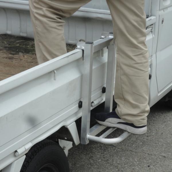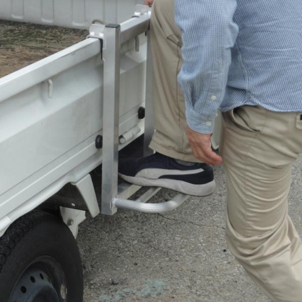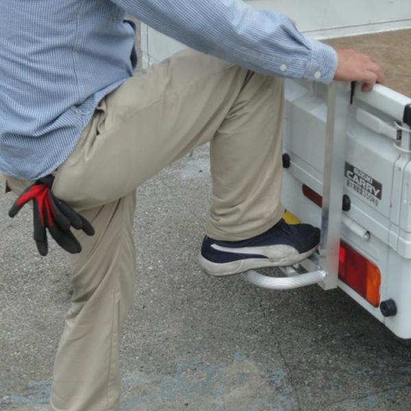 軽トラックのあおりに設置。荷台への乗降りを補助。