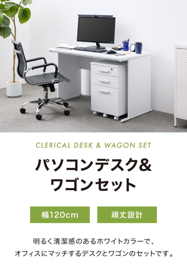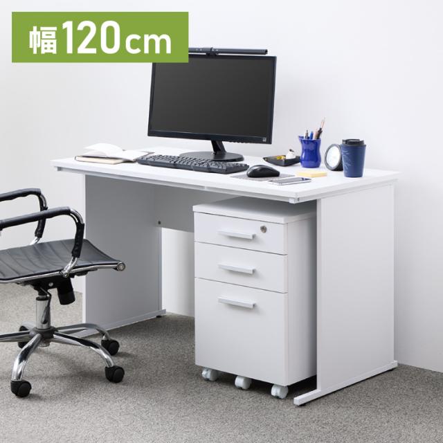 【※法人様限定販売】 【オフィス デスク 幅120 + オフィスワゴン 2点 セット】 テレワーク 業務用 収納 I字 白 デスクチェア 在宅勤務 テレワーク 鍵付き 会社用 事務机 事務用デスク(代引不可)【送料無料】