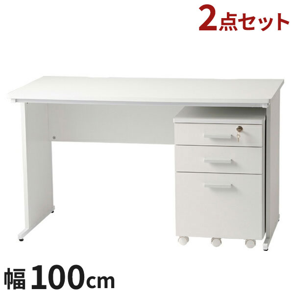 【※法人様限定販売】 【オフィス デスク 幅100 + オフィスワゴン 2点 セット】 テレワーク 業務用 収納 I字 白 デスクチェア 在宅勤務 テレワーク 鍵付き 会社用 事務机 事務用デスク(代引不可)【送料無料】