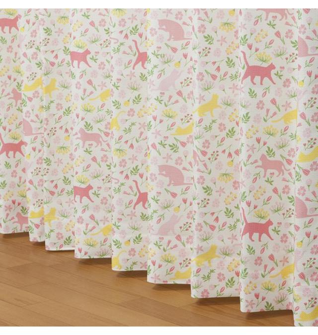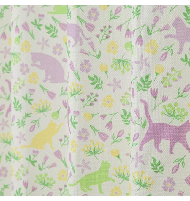 かわいいねこたちがプリントされており、鮮やかな色使いがお部屋を明るく彩ります。