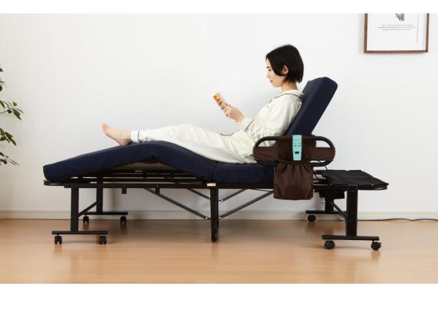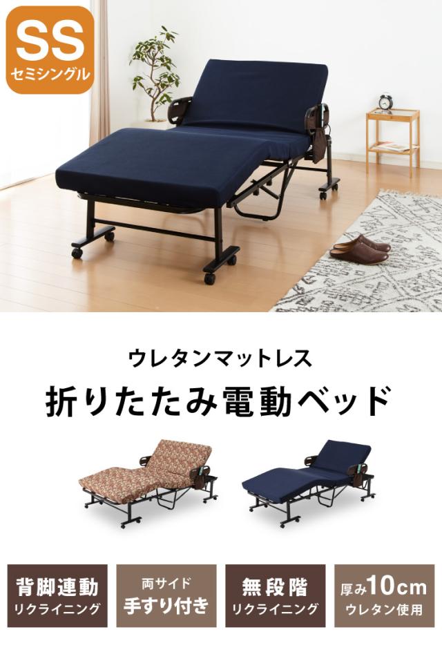 電動ベッド ウレタン使用 セミシングル 厚さ10cm 電動リクライニング 折りたたみベッド 電動 組立て不要 完成品 介護ベッド 折り畳み リクライニングベッド(代引不可)【送料無料】