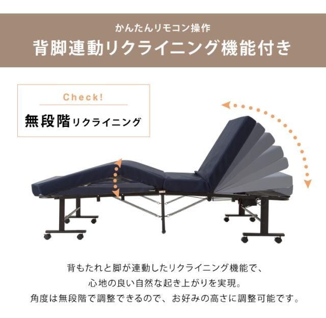 電動ベッド 低反発ウレタン使用 セミシングル 厚さ10cm 電動リクライニング 折りたたみベッド 電動 組立て不要 完成品 介護ベッド 折り畳み リクライニングベッド(代引不可)【送料無料】