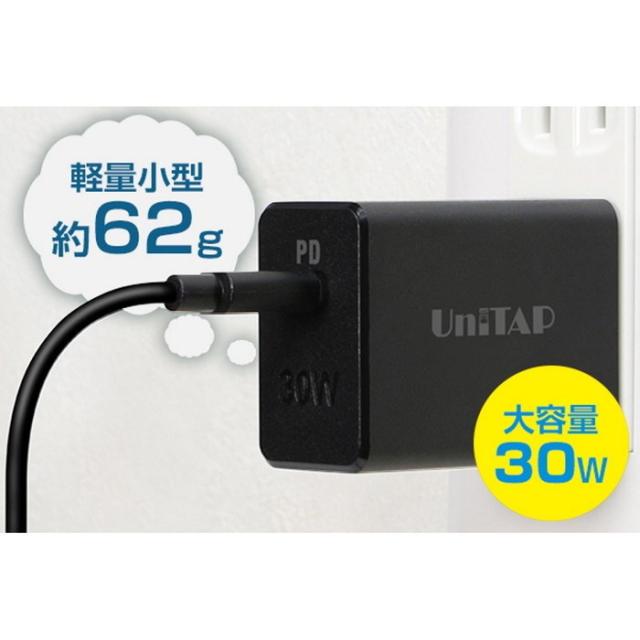 プリンストン UniTAP PD30W対応 Type-C超急速充電器 GaN 窒化ガリウム採用、Power Delivery対応、スイングプラグ PPS-PD30G