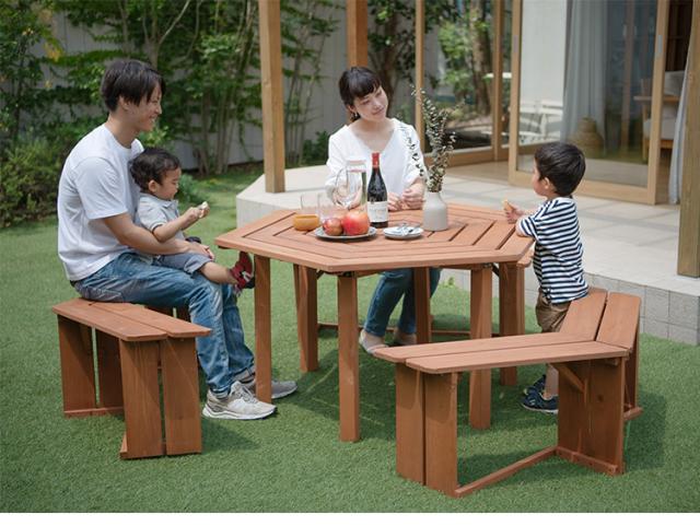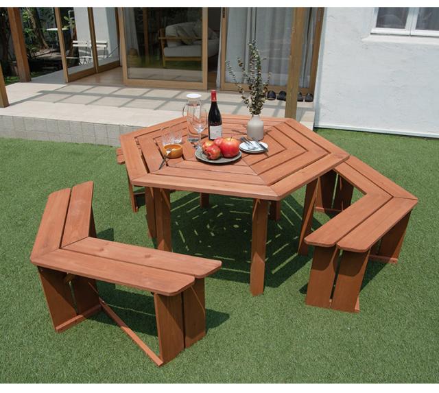 六角テーブルベンチセット