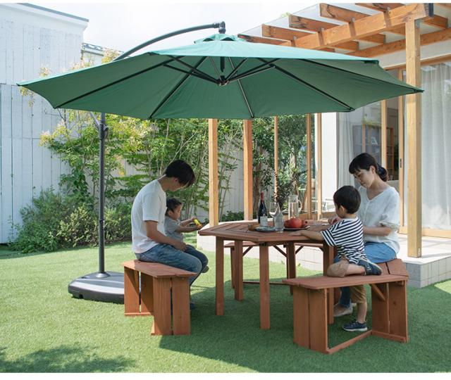 ・パラソル用ホールがテーブルに空いているので、パラソルも付けて使用できます。