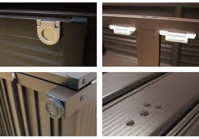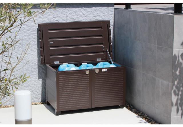 ・大容量192L分の収納力。灯油缶やガーデン、アウトドア用品をすっきり収納できます。・蓋を閉めると、アルミベンチに早変わり。