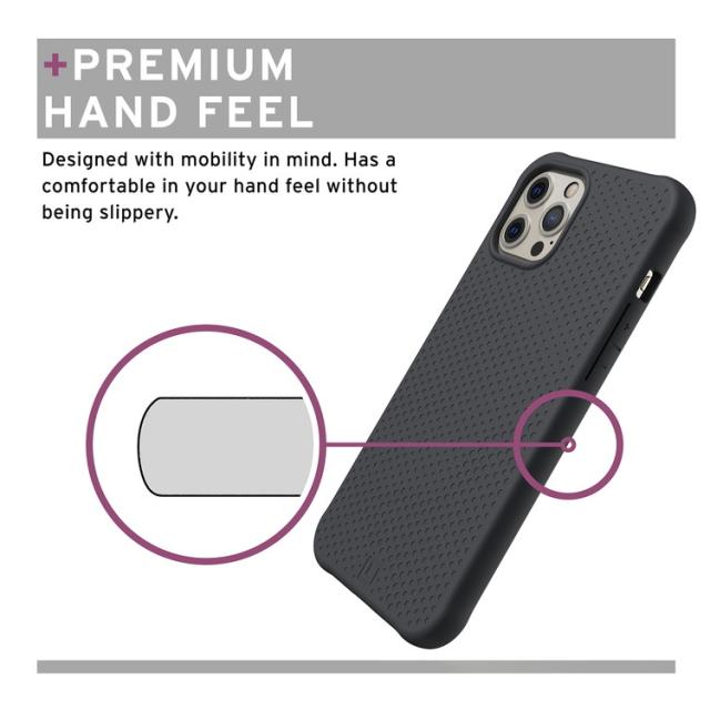操作性に優れたボタン部、ケースをはめた状態で充電可能なポート部、写り込みのない形状のカメラホール等耐衝撃性に優れながらも使いやすさを犠牲にしない、普段使いにも最適な設計となっています。