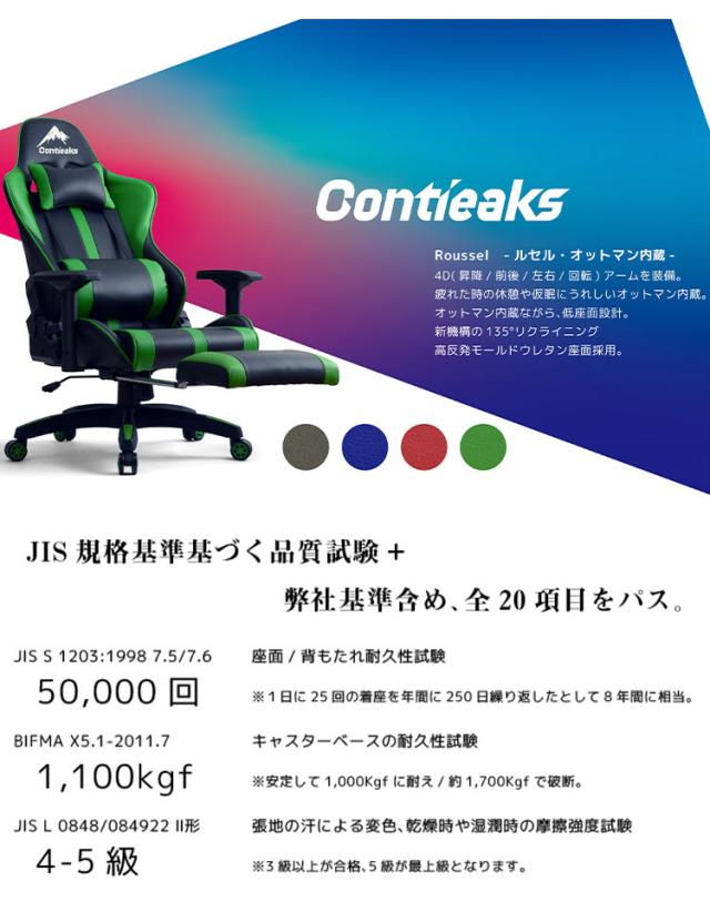 Roussel ゲーミングチェア ルセル オットマン 4Dアームレスト 低床座面 耐荷重150 アームレスト 可動 リクライニング 昇降 オフィスチェア(代引不可)【送料無料】