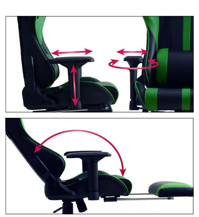 上下昇降9cm、左右首振り、前後スライド、左右スライドの4方向の調整が可能な4Dアームレストを搭載しています。細かく設定が出来るので常に最適な位置で肘をサポートします。