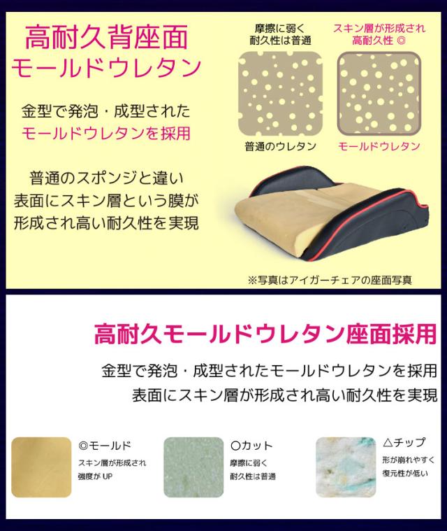 レバーを右側にバネを左側にと、分離させた新構造のリクライニング。レバーも軽く、滑らかに23段階の調節ができ、最大角度は160°のリクライニング可能です。