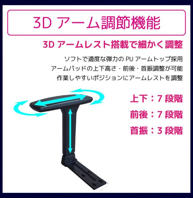 携帯ゲーム機やパットを持つときなどアームが微妙な位置にある…ということがないようにアームは昇降・前後・回転調節可能な3Dアームを搭載しております。