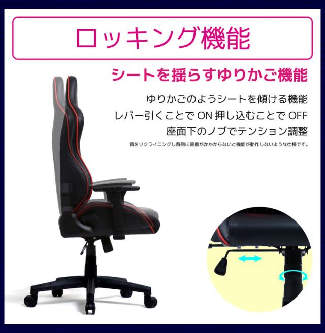 背もたれに体重をかけた際に座面が背もたれと連動して動くロッキング機能。座面下のノブを左右に回すことで、ロッキング機能の強弱を簡単に調節できます。