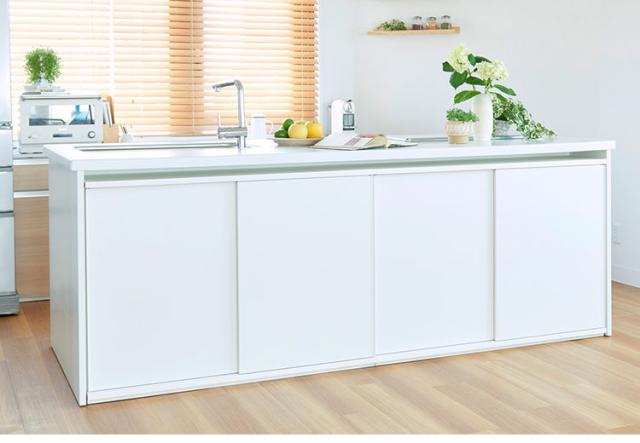 【特長】同じシリーズの商品を横に連結することができます。高さ8.1cmの巾木カットが標準加工。キッチン ダイニング リビングにちょうどよいサイズ。