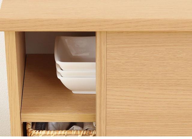 カウンター下収納 キャビネット 棚 幅120cm 高さ85cm 奥行30cm ナチュラルブラウン カウンター下 引き戸 収納 白井産業(代引不可)【送料無料】