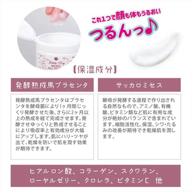これ一つで年齢による、シワ・ハリ・弾力・くすみ肌・肌荒れなど、肌の悩みを解消させて、透明感のある美しい肌に導きます。●発酵熟成した馬プラセンタ配合・・ハリ・ツヤのアップが実感でわかります。