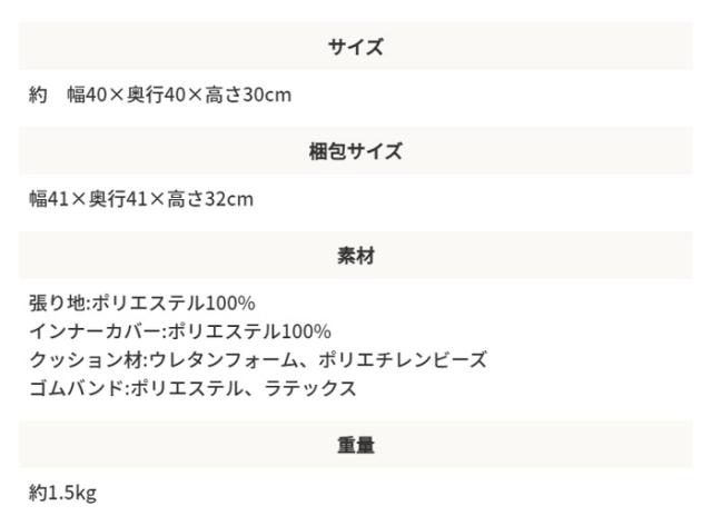 クッション材:ウレタンフォーム、ポリエチレンビーズ