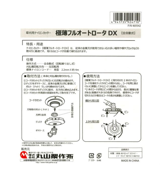 丸山製作所 MARUYAMA 草刈用ナイロンカッター 極薄フルオートロータDX M4全自動式 469342